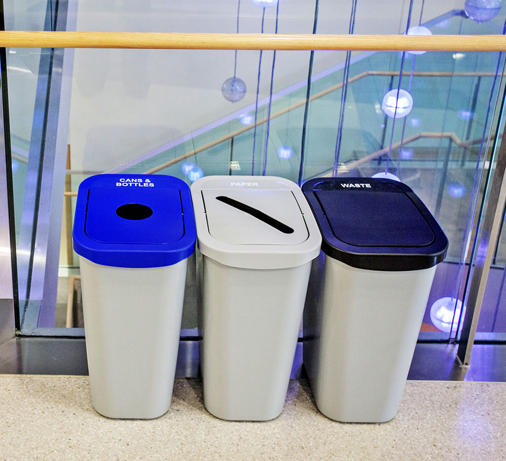 The size and capacity of the recycling bins should align with the office's waste output. For smaller offices or departments, compact bins might suffice, while larger offices may require bigger containers or a combination of different sizes.