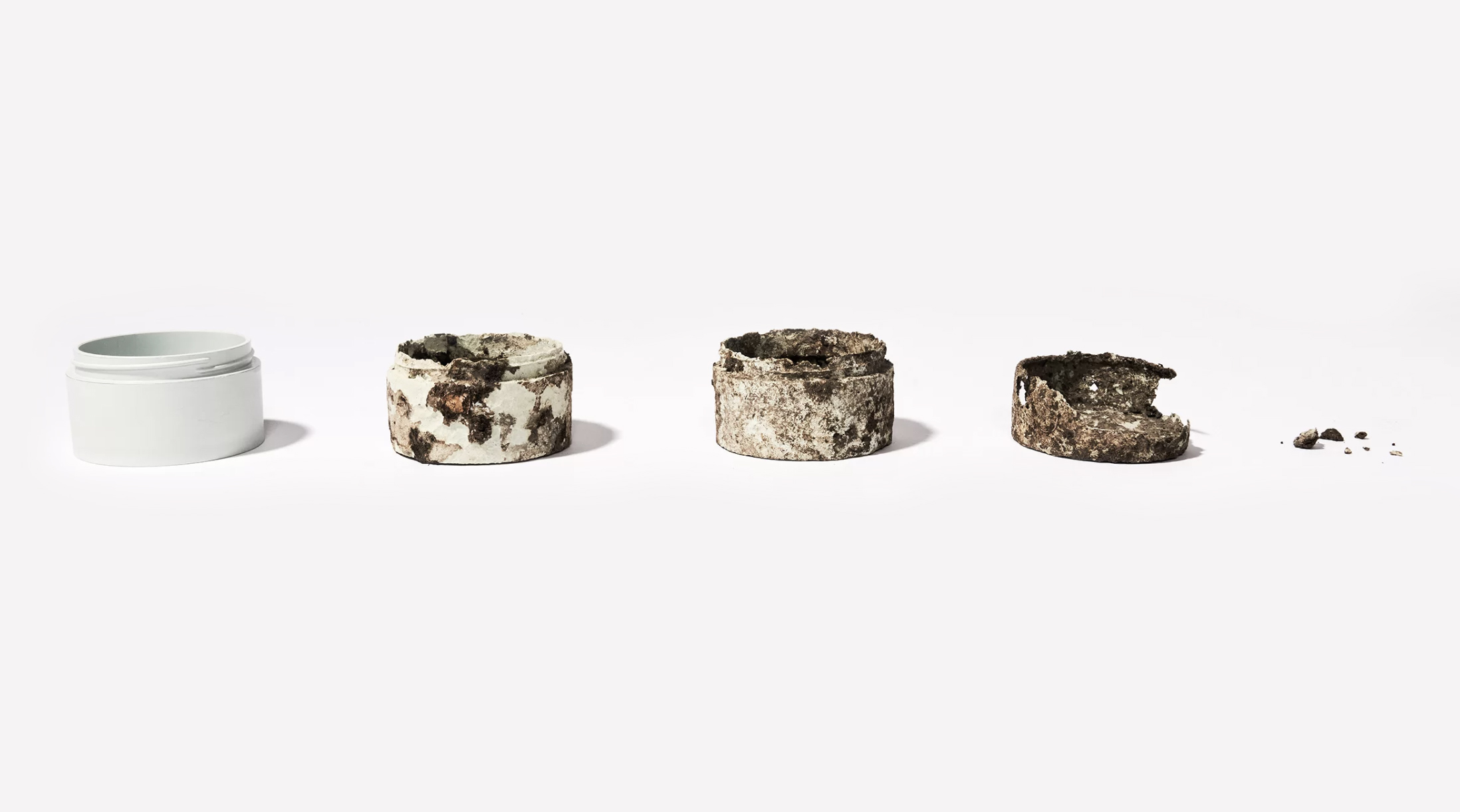 “Transforming Sustainable Packaging with …” from www.materialfuture.com and used with no modifications. Shows how this biodegradable plastic, made from seafood shell waste, degrades over just a few weeks in a commercial composting plant.