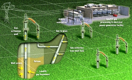 - Collection wells are strategically placed throughout the landfill to maximize gas capture