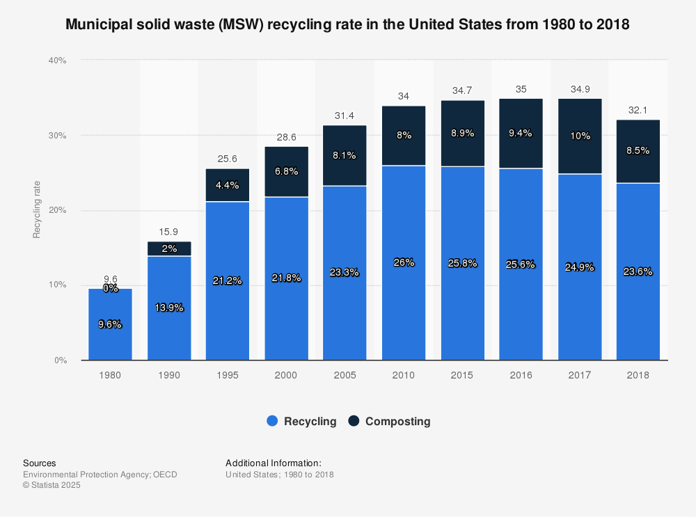 “municipal solid waste recycling rate …” from www.statista.com and used with no modifications.
